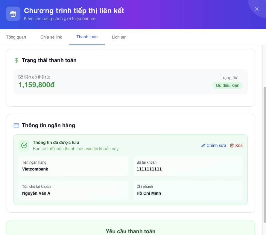 Sau khi thiết lập Chương trình Affiliate thành công: