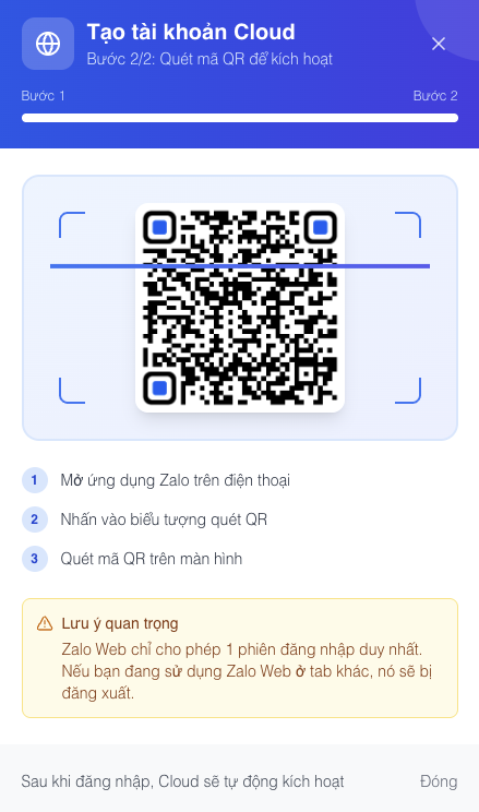 - Zalo Web chỉ cho phép 1 phiên đăng nhập duy nhất