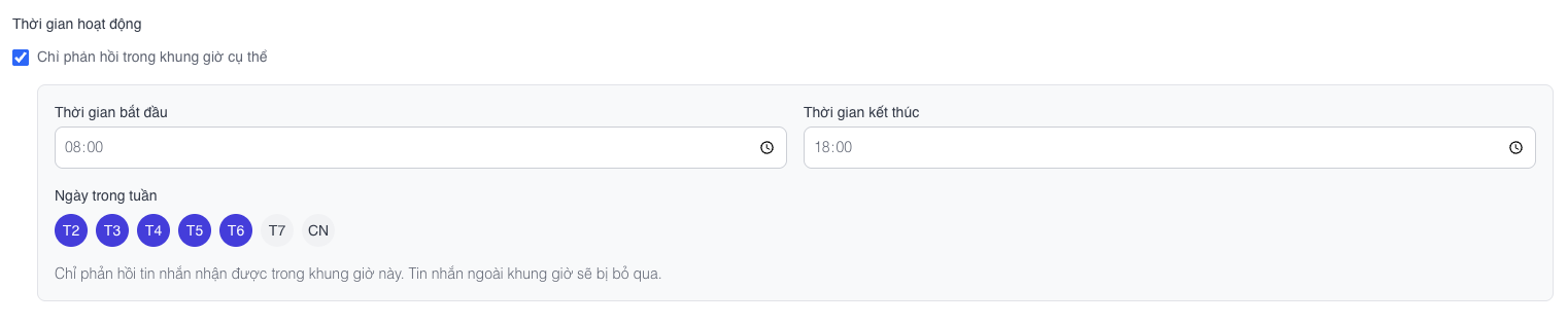 - Bật tùy chọn "Chỉ phản hồi trong khung giờ có thể"