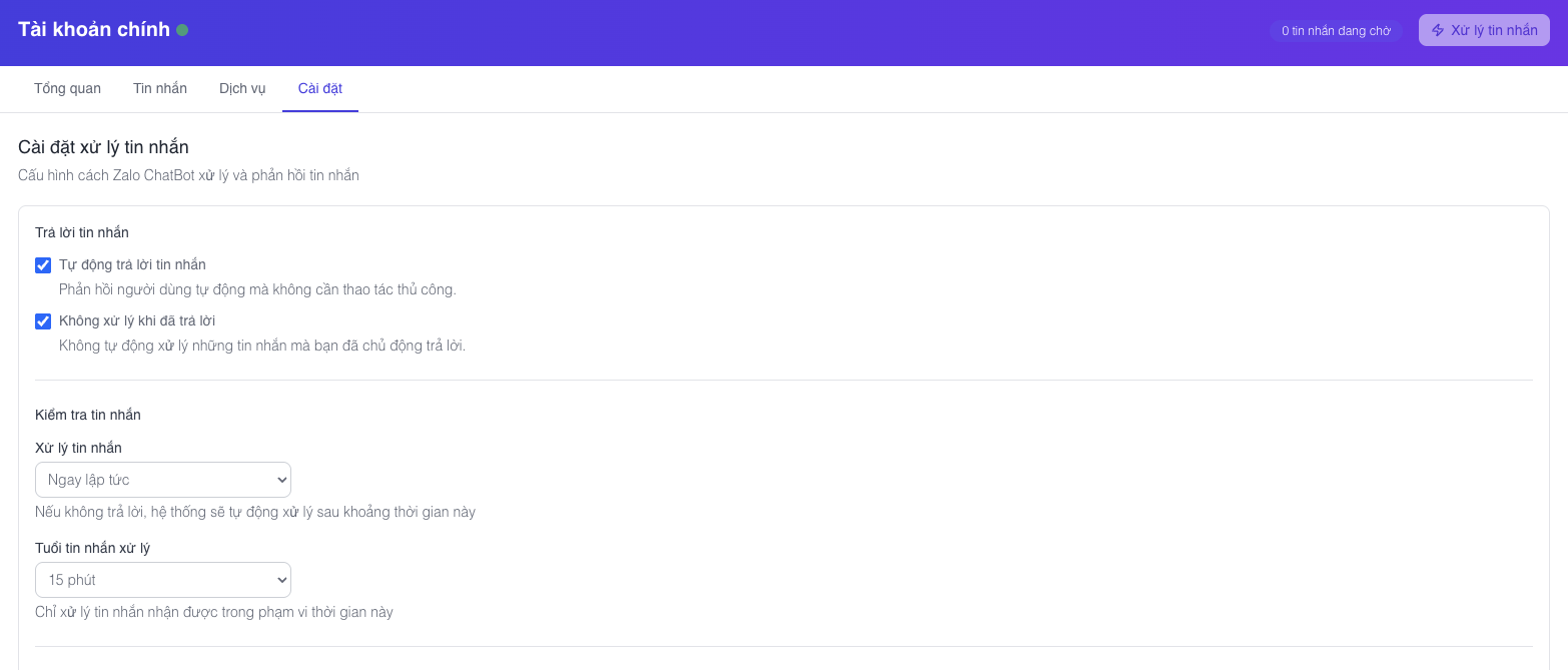 - Xử lý tin nhắn: Ngay lập tức, sau 30 giây,..